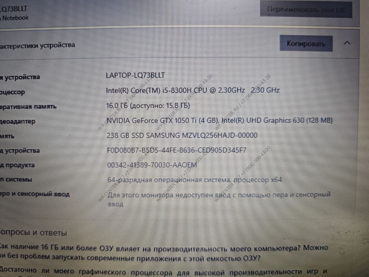 Процессор Intel Core i5-8300h (SR3Z0)